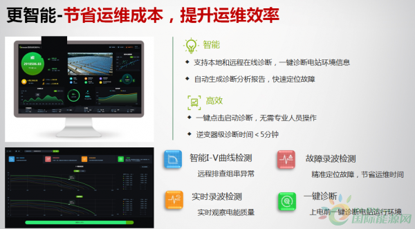 最后,以更智能化的逆變器節省運維成本,提升運維效率。古瑞瓦特依托逆變器的技術優勢,開辟了智能運維新跑道。其逆變器具有更高的智能化,可支持本地和遠程在線診斷,一鍵診斷電站環境信息,自動生成診斷分析報告,快速定位故障,診斷時間小于5分鐘。古瑞瓦特逆變器采用智能I-V曲線檢測,遠程排查組串異常。通過精準定位故障,節省運維時間和運維成本,提升運維效率。 此外,高品質服務也是古瑞瓦特的核心優勢之一。目前,古瑞瓦特可提供線上線下全方位的智能服務保障。線上OSS系統可智能分析診斷遠程運維,線上接收售后訴求,線上派工單,全程管控;古瑞瓦特線下服務部分一直致力于打造面向分散EPC客戶全面安全覆蓋及時響應的團隊。線下服務包括5個大區服務中心,22個省級服務網點覆蓋全國,100多位經驗豐富的專職服務工程師,數百位授權服務工程師,30多輛售后服務車(流動備品庫),可提供全天候、全方位、專業化服務。古瑞瓦特的服務體系也是國內眾多EPC客戶非常認可的服務體系,包括有全國各地的流動服務車和實時省級服務人員及時提供響應。