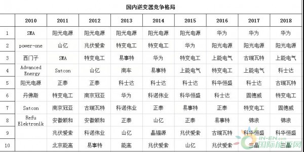 國內光伏逆變器領域一直是光伏行業競爭最激烈的角逐戰場之一。尤其是近幾年,SNEC展會上,逆變器企業風頭無兩,蓋過組件企業。 2010年~2018年這九年間,風起云涌,王旗變換,國內逆變器企業經歷了怎樣的波動,逆變器專家梳理了這些年間逆變器出貨排名的變化,一起來看看吧。(排名數據僅供參考,如有投資或采購意向,還需多進行調查和采證。)