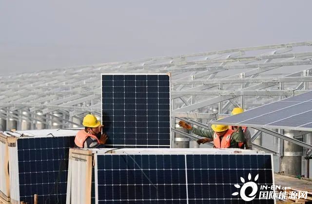 1月5日,建設者在華電海晶光伏項目B標段施工。新華社記者 李然 攝